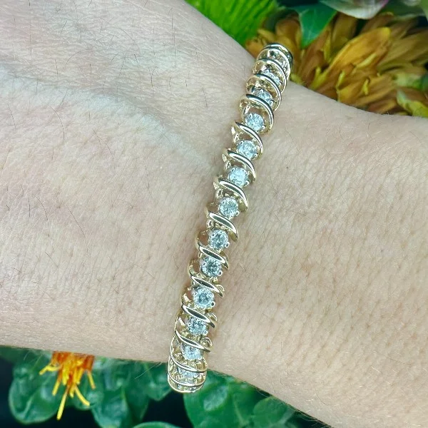 Diamond Exchange Houston has this lovely 14k 3.50 CTW Diamond Tennis Bracelet available for only $1700. This bracelet is made from 14k yellow gold and natural round diamonds. We only have 1 bracelet like this available so get it while it lasts. If you are interested in purchasing this bracelet or would like to see it in person then please fill out our contact form to schedule an appointment or call us today at 281-623-1105. Diamond Exchange Houston has a large selection of wholesale diamond jewelry.