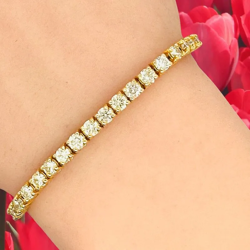 Diamond Exchange Houston has this 7 CTW 10k Yellow Gold Tennis Bracelet available for only $5500. This tennis bracelet is made from natural diamonds! We only have 1 item like this at this price so get it while it lasts. If you are interested in purchasing this tennis bracelet or would like to see this in person then please fill out our contact form to schedule an appointment or call us today at 281-623-1105. Diamond Exchange Houston has a large selection of wholesale diamonds and engagement rings.