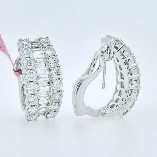 Diamond Exchange Houston has these 5 CTW 18k Diamond Fashion Earrings available for only $9500. These earrings are made from 18k white gold and feature round and baguette diamonds. You will definitely fall in love with these earrings when you see them in person.