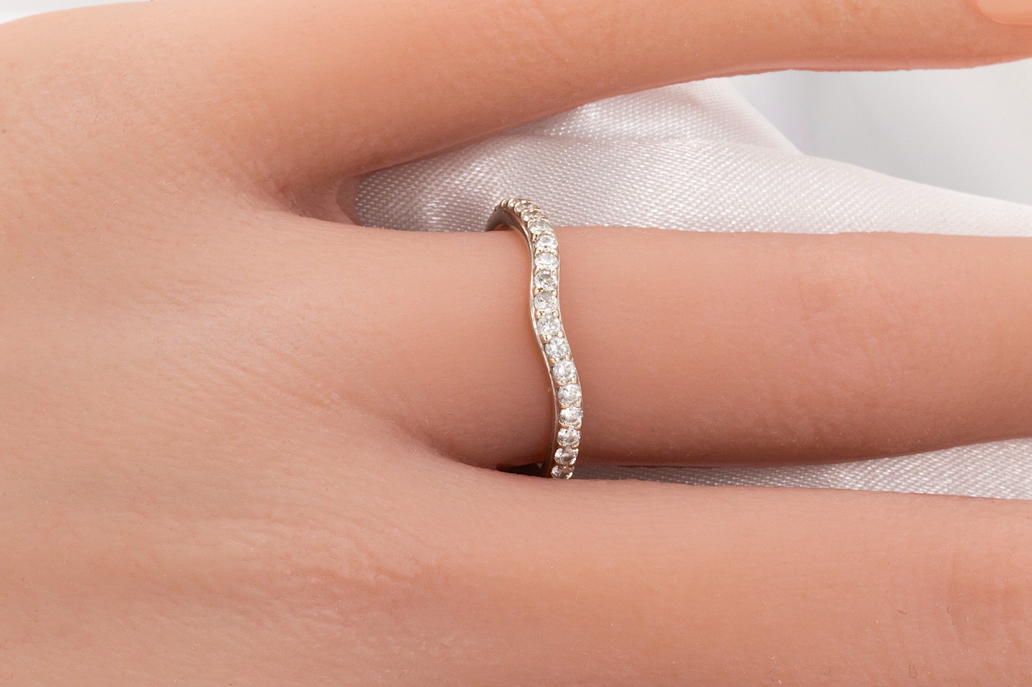 14k 0.25 CTW Curved Diamond Wedding Band