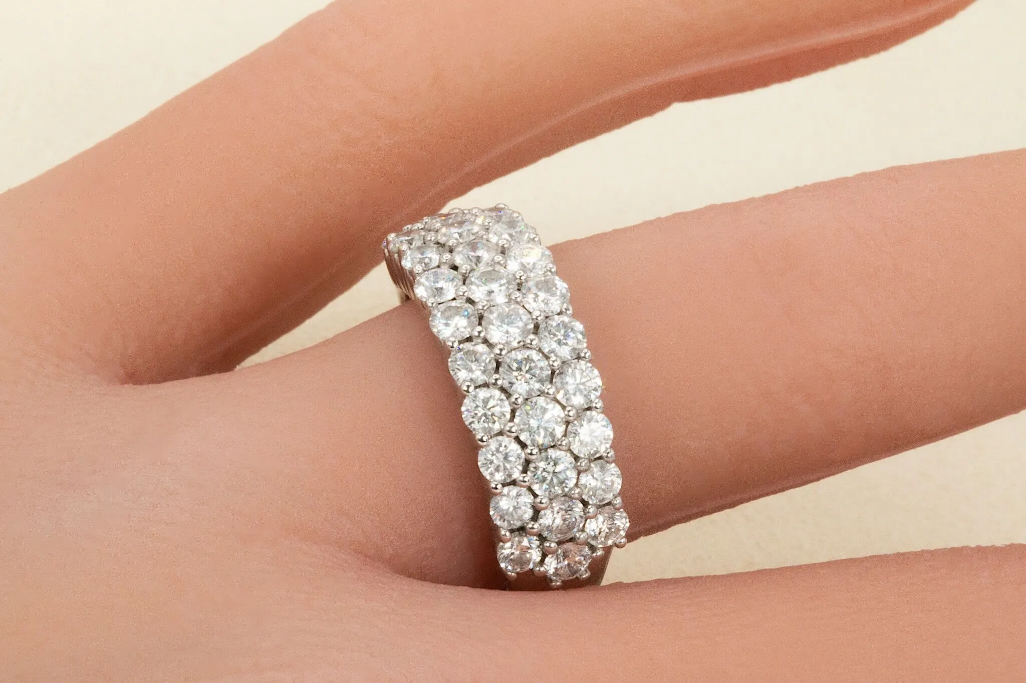 18k 2 CTW Wide 3 Row Round Diamond Wedding Band