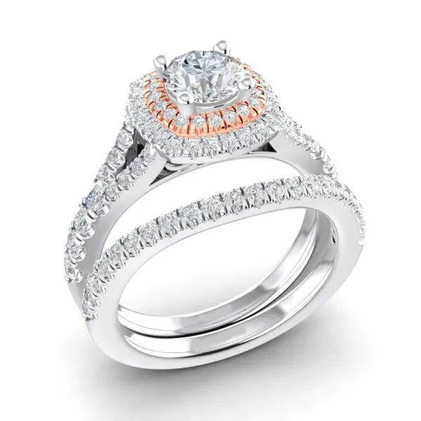 1.15 CTW 2 Tone Double Halo Engagement Ring