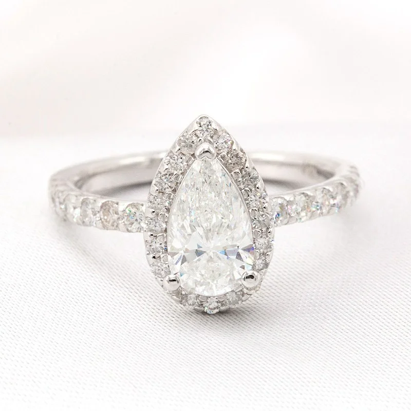 Sale! 1.59 CTW GIA Pear Halo Engagement Ring