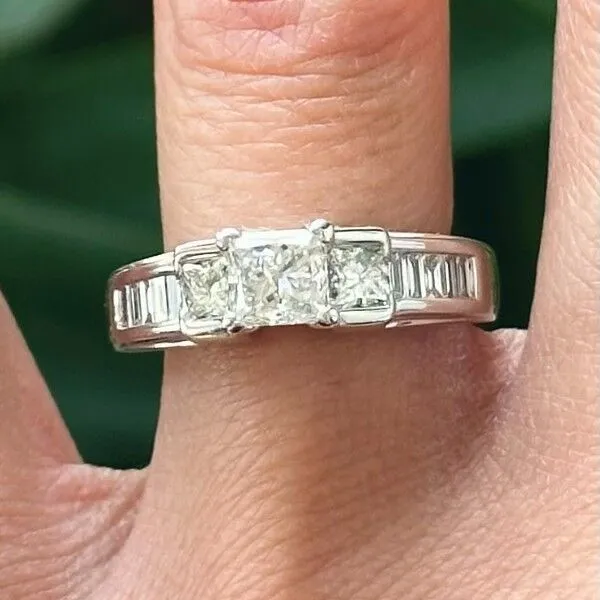 Diamond Exchange Houston has this 1.75 CTW Princess Cut Engagement Ring available for only $3500. This ring is made from 14k white gold and can be resized to fit any finger. The main stone is a 1.02 carat natural princess cut diamond. We can resize this ring to fit any finger. If you are interested in purchasing this engagement ring or would like to see this ring in person then please fill out our contact form to schedule an appointment or call us today at 281-623-1105.