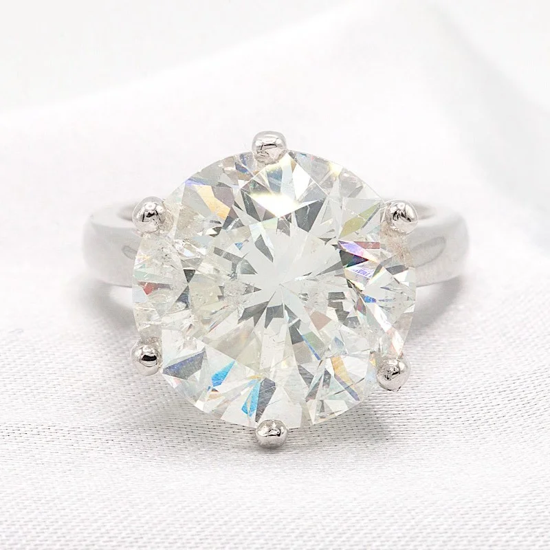 Diamond Exchange Houston has this 10.36 Carat Solitaire Engagement Ring available for $97,500. This is a MUST SEE in person to appreciate this big and brilliant diamond. The diamond in this ring a a NATURAL 10.36 carat round brilliant. The ring is a 14k solitaire that we can resize or swap out to a ring of your choice.