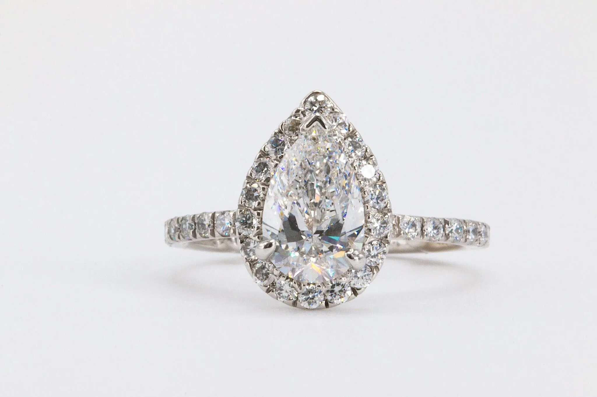 14k 1.52 Carat Total GIA Certified Pear Shape Halo Engagement Ring