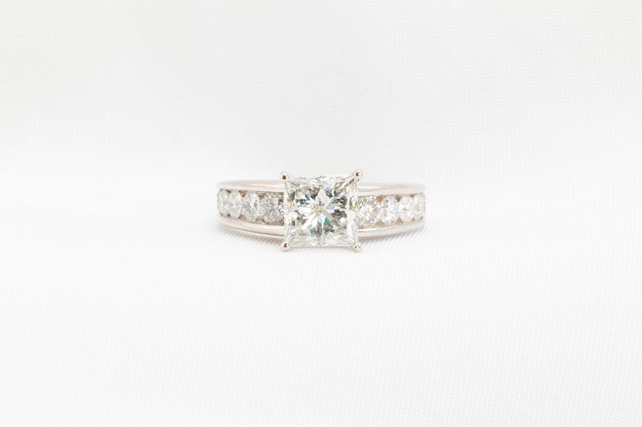 Diamond Exchange Houston has this beautiful 3.13 CTW Princess Cut Engagement Ring available for only $6800. This ring features a 2.13 carat NATURAL princess cut diamond as the main stone. The ring is made from 14k white gold and it can be resized to fit any finger. We only have 1 ring like this available so get it while it lasts. If you are interested in purchasing this engagement ring then please fill out our contact form to schedule an appointment or call us today at 281-623-1105. Diamond Exchange Houston has a large selection of engagement rings in-store and we are experts at creating custom engagement rings.