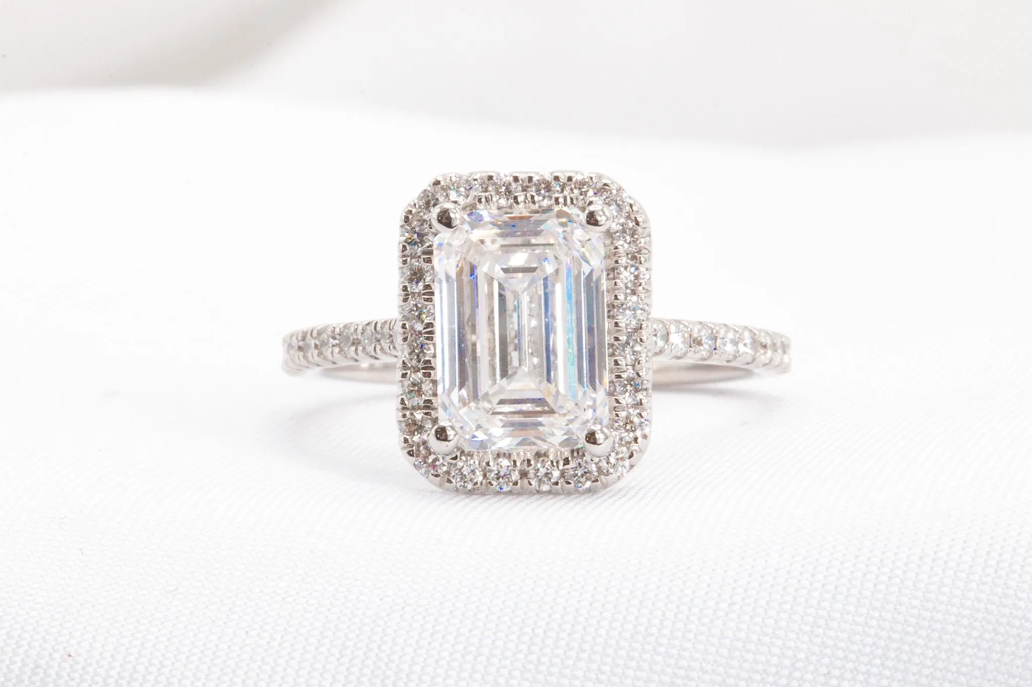 Sale! 14k 3.5 CTW Lab Emerald Cut Halo Engagement Ring