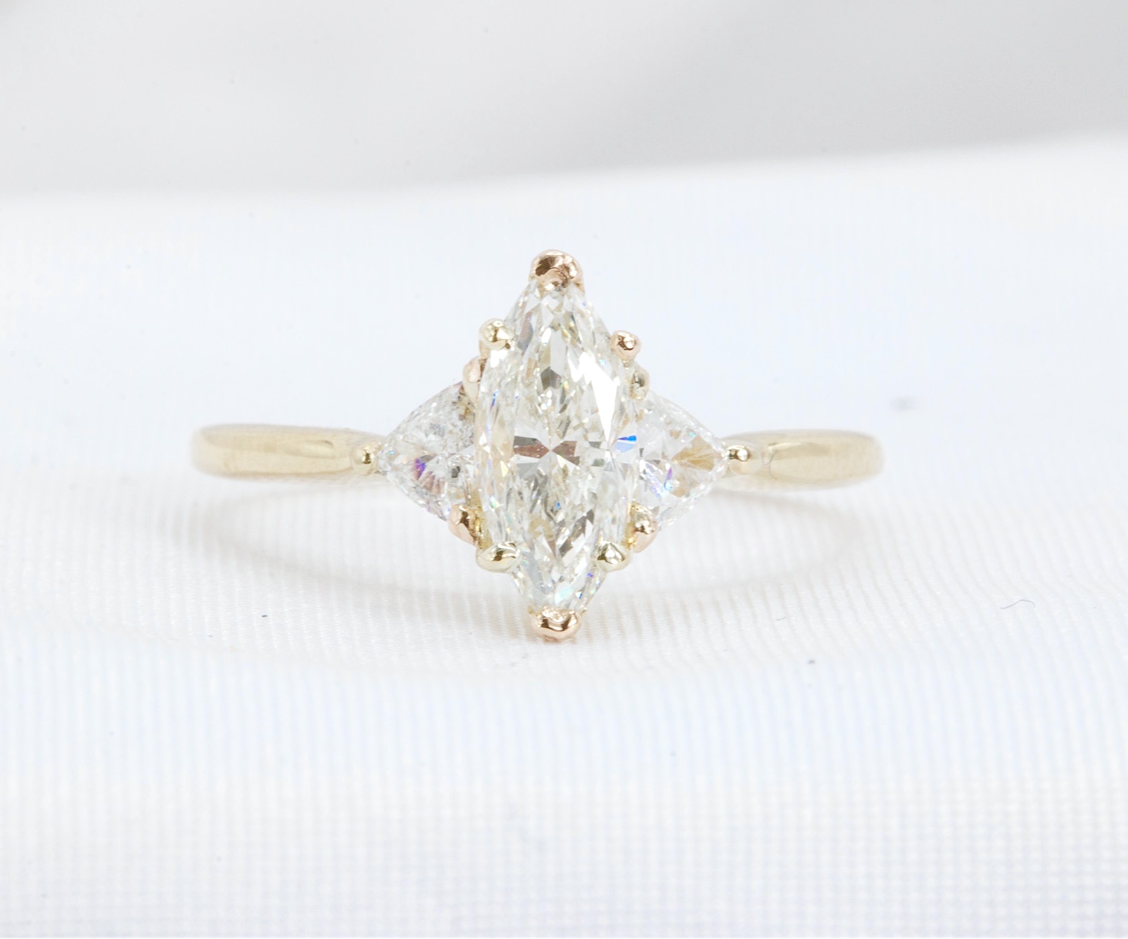 14k Yellow Gold 1.37 CTW GIA 3 Stone Marquise Cut Diamond Engagement Ring