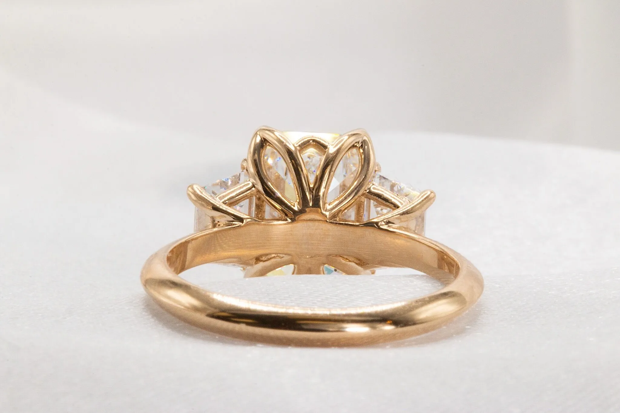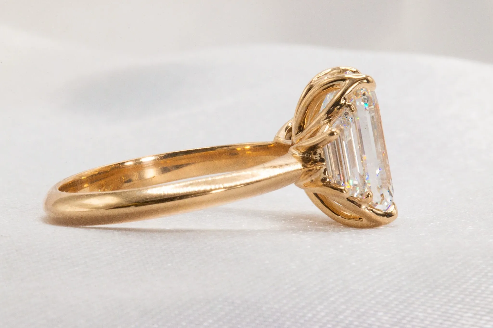 14k Yellow Gold 4.03 CTW Lab Emerald Cut 3 Stone Ring
