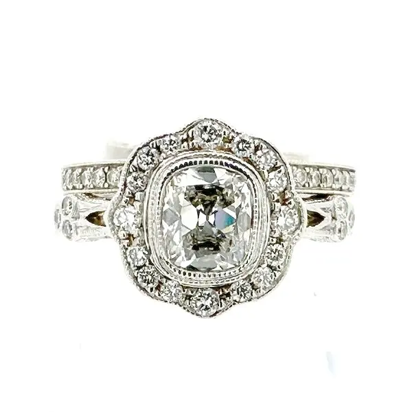 Sale! 18k Custom GIA Cushion Cut Engagement Ring and Band