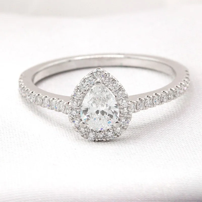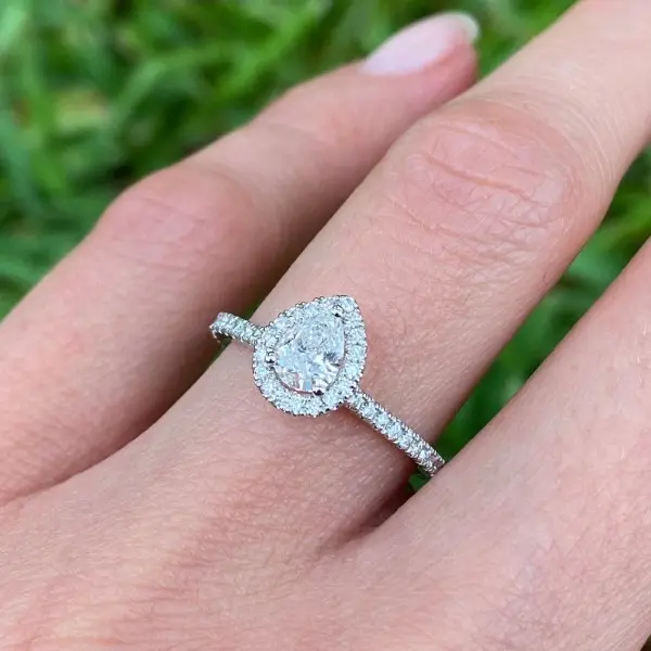 .70 CTW18k GIA Certified Pear Halo Engagement Ring