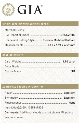 Diamond Exchange Houston has this 2.50 CTW GIA Cushion Engagement Ring and Wedding Bands available for only $6000. This lovely ring features a stunning 1.90 carat GIA Certified cushion cut diamond