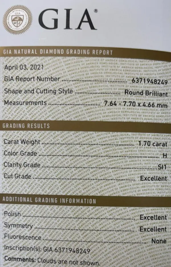 Diamond Exchange Houston has this 2.50 CTW Platinum GIA Engagement Ring and Band available for only $16,500 ***Reduced to only $13,000 for fast sale!! This ring features a 1.70 carat GIA Certified round diamond that is “H” in color, XXX cut, and “SI1” in clarity (see cert. pic) as the main diamond. The engagement ring setting is made from platinum and we can resize it to fit any finger.