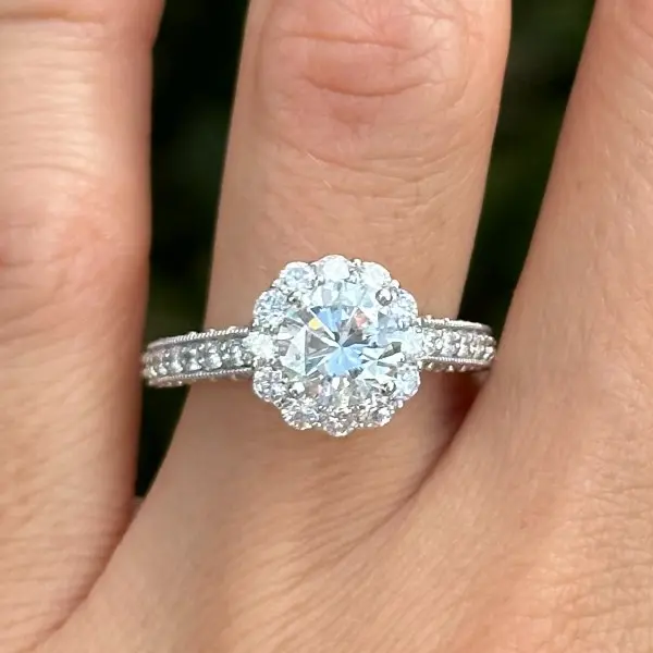 Diamond Exchange Houston has this 2.75 CTW Halo Diamond Engagement Ring available for only $5700. The main diamond featured in this ring is a 1.50 carat natural round brilliant diamond that has a color of “G” and a clarity of “I1” (eye clean). The setting is made from 14k white gold and it can be resized to fit any finger. We only have 1 ring like this available so get it while it lasts.