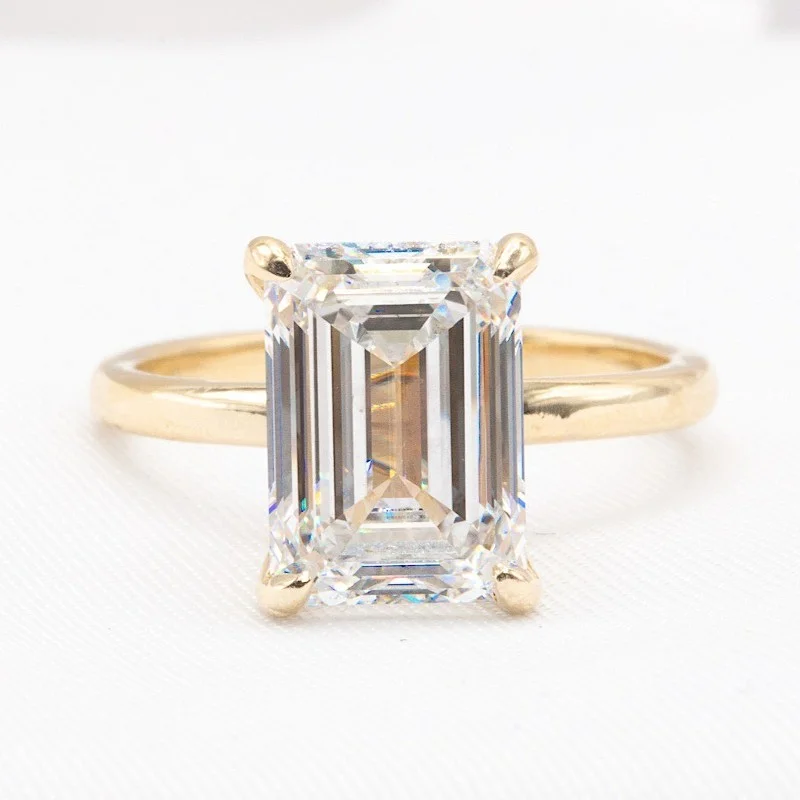 Diamond Exchange Houston has this 3.93 Carat Lab Grown Emerald Engagement Ring available for only $3999. This ring features a stunning 3.93 carat IGI Certified emerald cut diamond that is “D” in color and “VS1” in clarity. The diamond is set in a 14k yellow gold solitaire setting that can be resized to fit any finger.