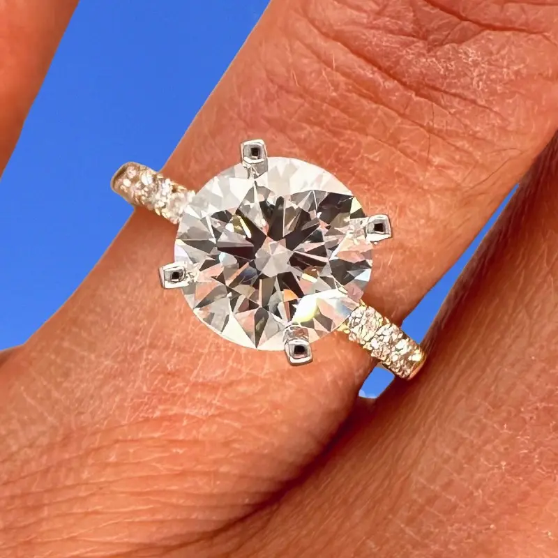 Diamond Exchange Houston has this 3 CTW Round Lab Diamond Engagement Ring available for only $3500. This ring is made from 14k gold and comes in yellow gold, white gold, and rose gold. The main diamond is a 2.50 carat round diamond that is certified by IGI. We have this ring available in all sizes.