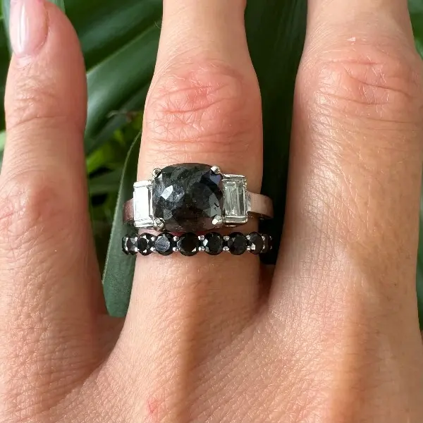 Sale! 4.5 CTW Black Diamond Engagement Ring and Eternity Band