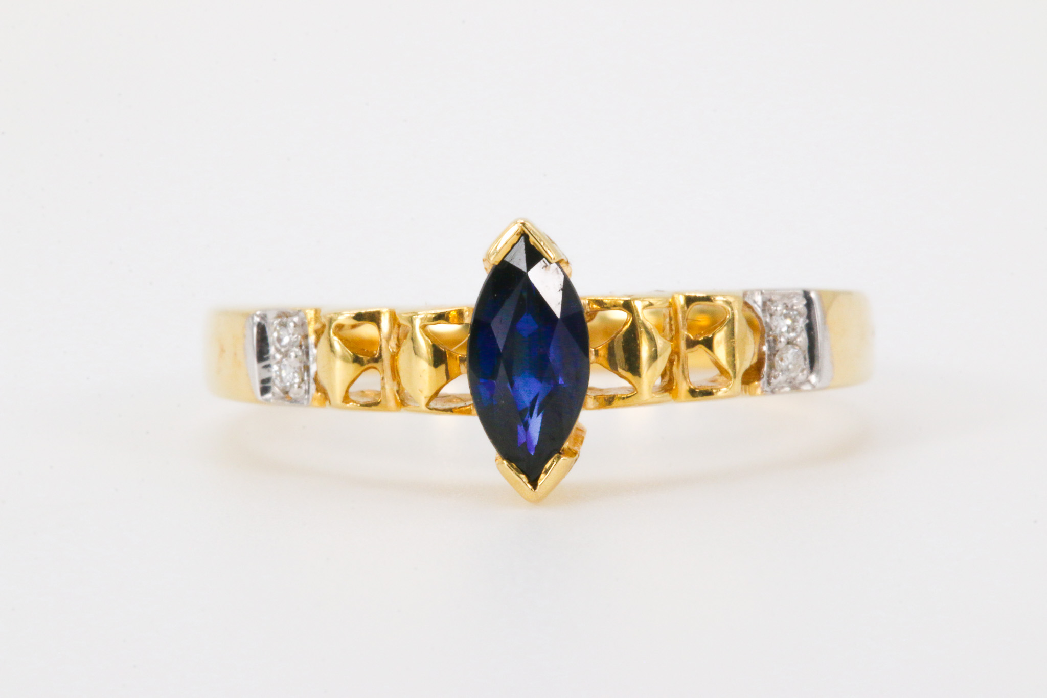 Diamond Exchange Houston has this gorgeous 18k Gold Fashion Sapphire Ring available for only $880. This ring features natural marquise cut sapphire, is made from 18k gold, and it can be resized. Get it while it lasts. If you are interested in purchasing this ring or would like to visit our showroom please fill out our contact form to schedule an appointment or call us today at 281-623-1105.