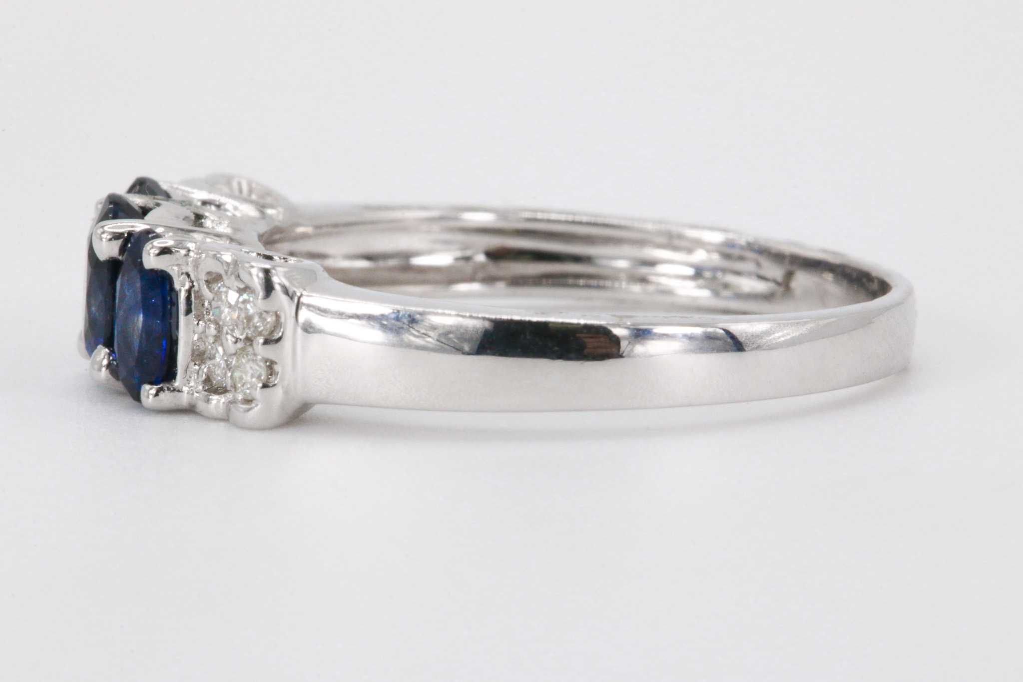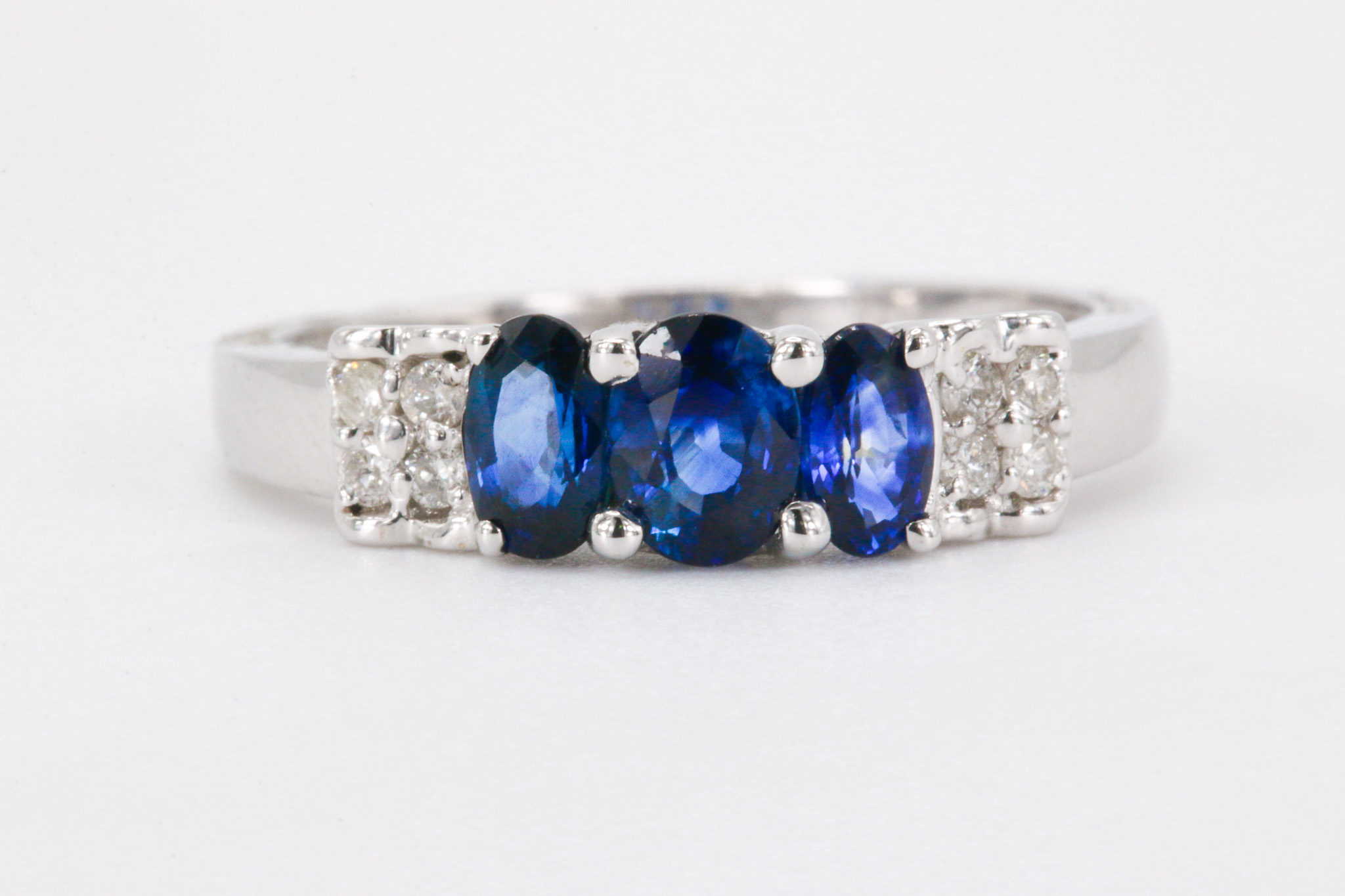 18k White Gold Sapphire And Diamonds 3 Stone Ring
